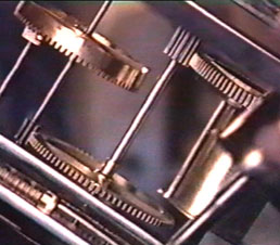 autre extrémité un poids très lourd, en relation avec un ensemble de rouages